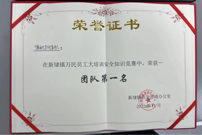 近日,为全面实施全民安全素养提升计划,根据《浙江省企业百万员工安全大培训实施方案》和《嘉兴市企业十万员工安全大培训实施方案》的有关要求,平湖市新埭镇应急管理办公室结合实际,迅速组织开展“全市企业万名员工安全大培训安全生产知识竞赛”多多28注册入口尔能源装备有限公司代表荣获团体冠军。
